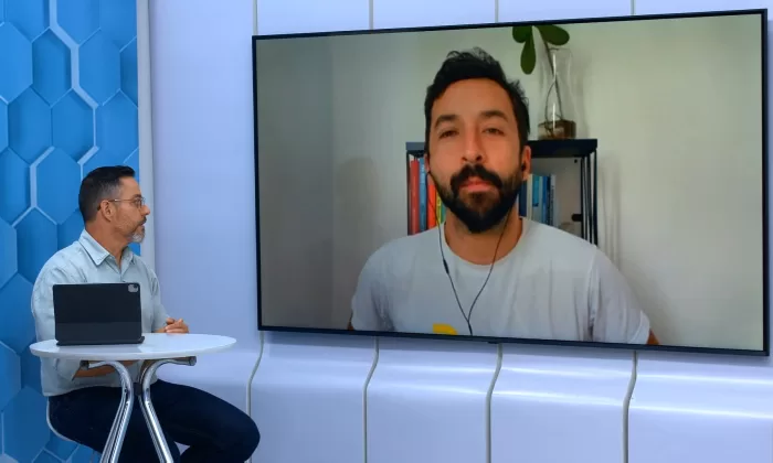 O primeiro convidado da noite é Eduardo Feldberg, mais conhecido como Primo Pobre. Ele é criador de conteúdo, onde fala sobre finanças com bom humor, acumulando mais de três milhões de seguidores no Instagram e quatro milhões no Youtube. E a outra convidada é Cris Moreira, consultora financeira, ela participa presencialmente no estúdio.