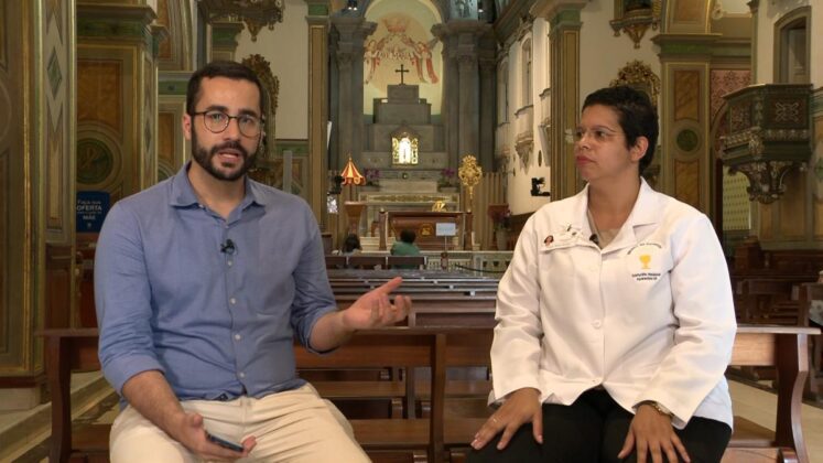 Por fim, Guilherme Machado ainda conversa com Tassiana Soares Pereira, Ministra da Eucaristia, que há anos serve voluntariamente no Santuário Nacional, valorizando o chamado da igreja aos leigos.