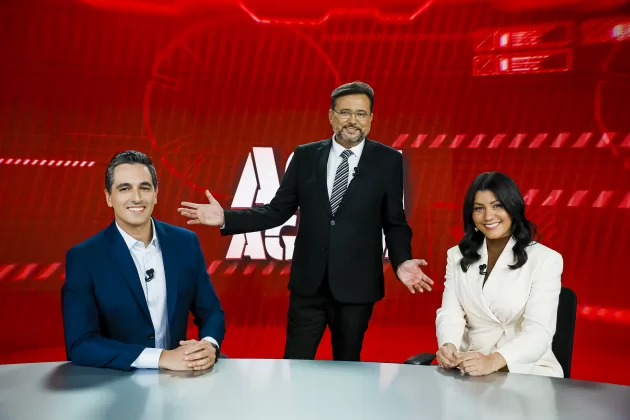 O Aqui Agora está de volta à tela do SBT. O jornal estreou na última segunda-feira (04/08) com Geraldo Luis como a arma secreta para conquistar a audiência. Na banca, Dani Brandi e Marco Pagetti. Mas, o programa também conta com os comentários de Rita Cadillac e Matheus Baldi.