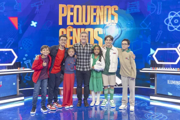 A nova temporada de “Pequenos Gênios” estreia nesse domingo e quem acompanhou as gravações garante que os episódios prometem. O quadro reúne crianças com altas habilidades de diferentes locais do país. Todos os participantes têm entre 8 e 13 anos de idade.O primeiro episódio tem o time Soinegirt, formado por Isabella, Pietro e Davi Luiz, e o time Iluminados, composto por Dante, João Gabriel e Lara.